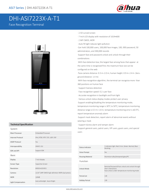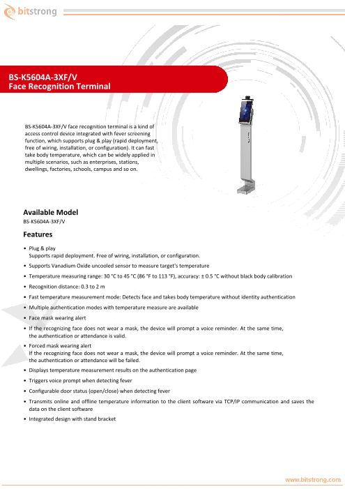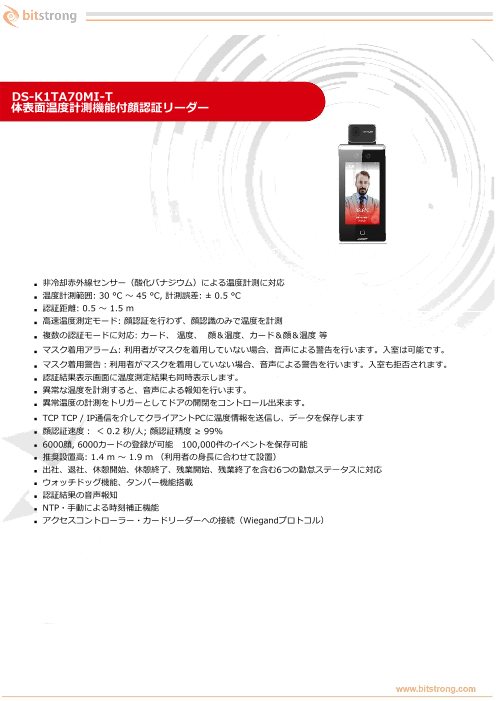 【特長】・マスクを着用している状態で正確な顔認識及び比較顔認証が可能・体温感知距離は1m(最適0.5m)・30,000人の顔データベースを記録・1:1比較認識率は99.7%、...
