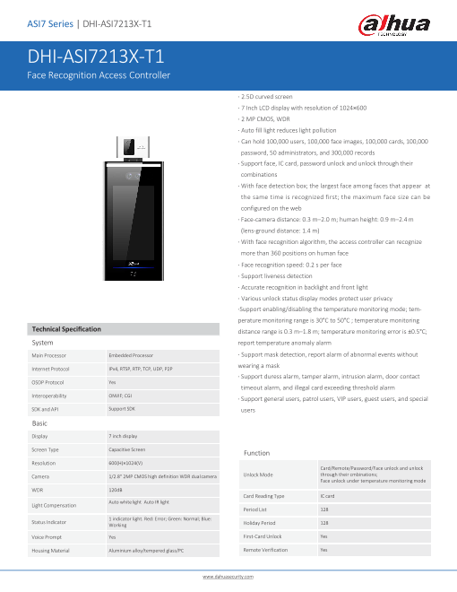 【特長】・7インチLCDディスプレイ、解像度1024x600・1/2.8" 2MP CMOS 高解像度 WDR デュアルカメラ・自動調光でモニターの明るさを低減・顔認識/カード/リモート/パス...
