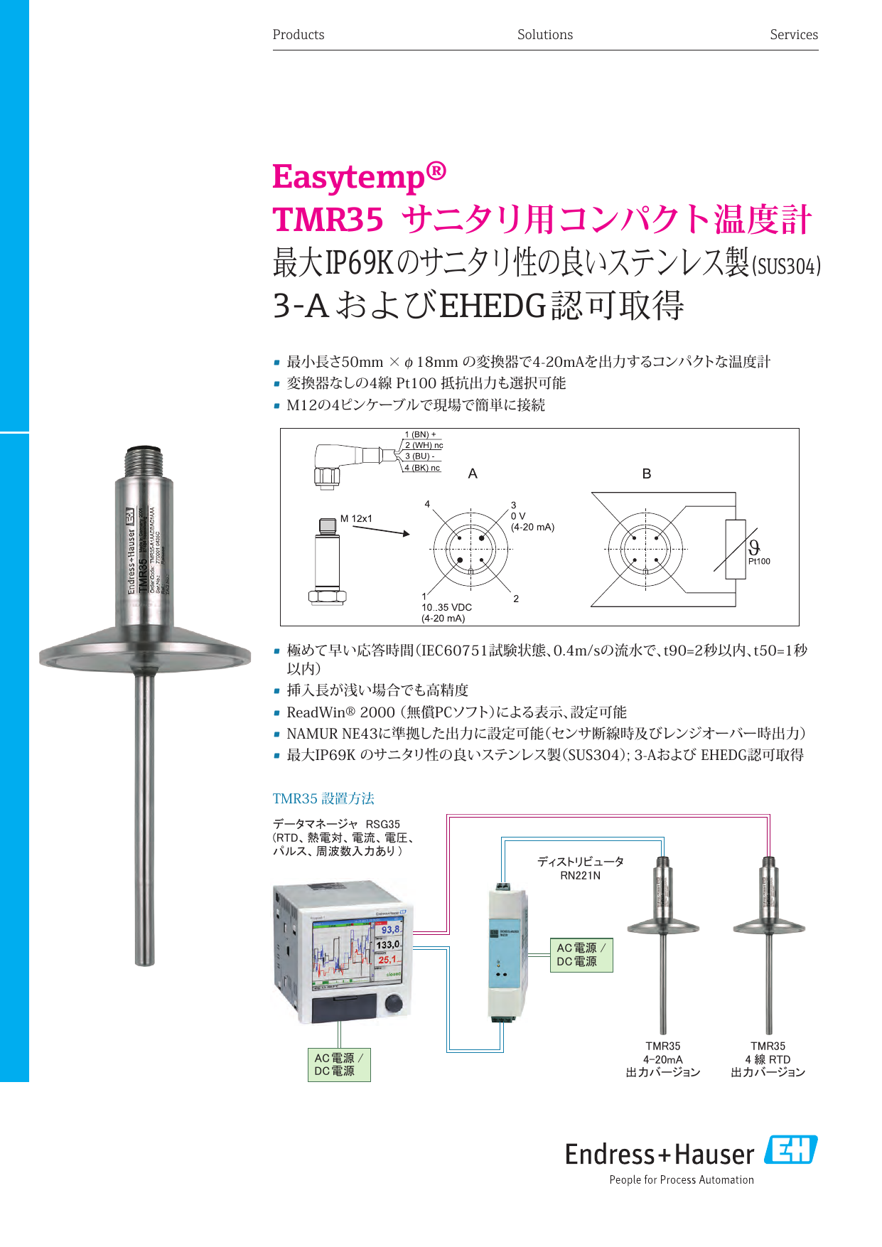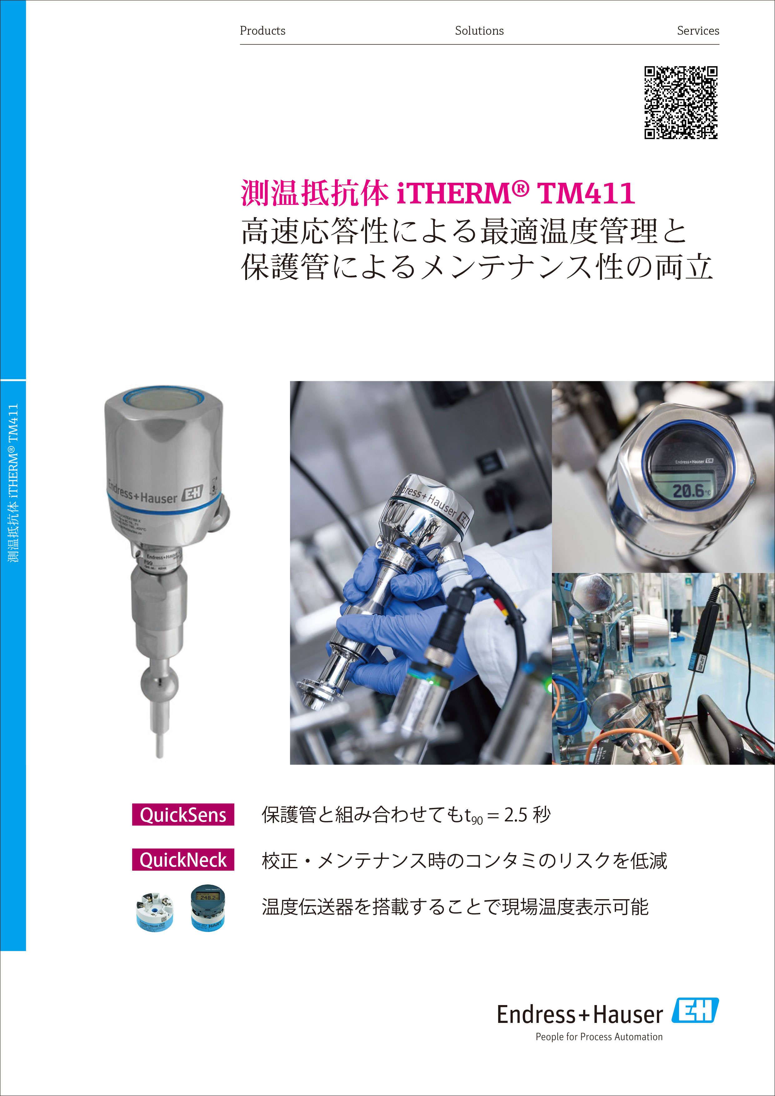 iTHERM TM411は「QuickNeck」と目的に特化したセンサラインナップにより、プロセスの安全性とメンテナンス性の飛躍的向上を実現し時間を創出いたします。食品・飲料産業およびライフサイエンス産業、改善プロジェクトに貢献いたします。