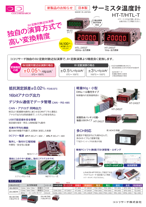 ■独自の演算方式で高い変換精度 B2定数対数近似演算 NTCサーミスタと組み合わせて温度計測します。変換精度 ・B2定数対数近似演算の場合 ±0.05%rdg以内* @0℃~150℃・B1定数対数近似演算の場合 ±0.5%rdg以内* @0℃~100℃/±3%rdg以内* @100℃~150℃ ...