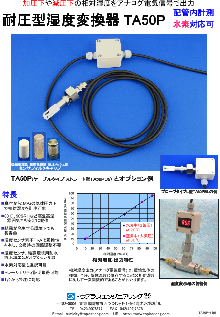 加圧下や減圧下の相対湿度をアナログ電気信号で出力