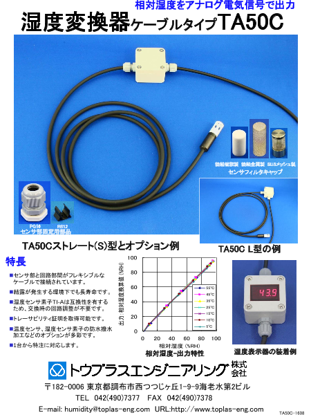◆センサ部と回路部間がフレキシブルなケーブルで接続されています。◆結露が発生する環境下でも長寿命です。◆湿度センサ素子TI-Aは互換性を有するため、交換時...