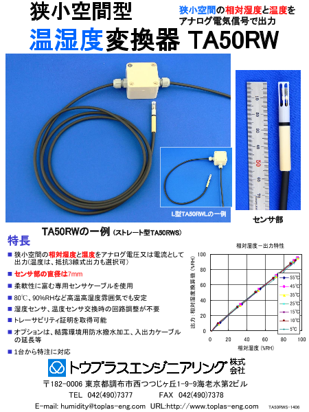 ◆狭小空間の相対湿度と温度をアナログ電圧又は電流として出力(温度は、抵抗3線式出力も選択可)◆センサ部の直径は7mm◆柔軟性に富む専用センサケーブルを使用◆80°C、90%...