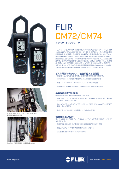 フリアーシステムズのFLIR CM72 600アンペアACクランプメーター、そしてFLIRCM74 600アンペアAC/DCクランプメーターは、トラブルシューティングに必要な計測機能をすべて備え、...