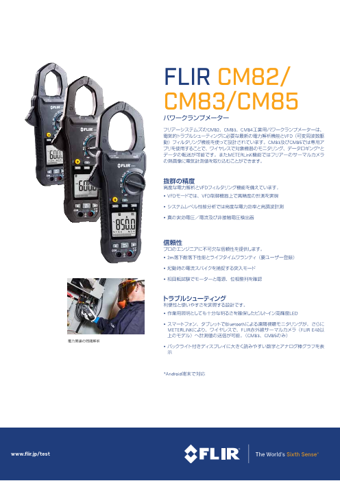 フリアーシステムズのCM82、CM83、CM84工業用パワークランプメーターは、電気的トラブルシューティングに必要な最新の電力解析機能とVFD(可変周波数駆動)フィルタリング機能を...