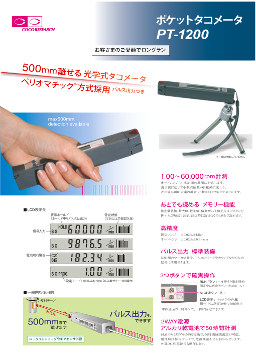 500mm離せる 光学式タコメータ パルス出力付 ペリオマチック方式採用