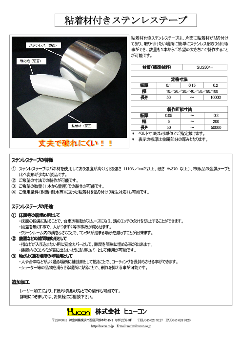◆ステンレステープはバネ材を使用しており強度が高く(引張強さ 1110N/㎜2以上、硬さ Hv370 以上)、市販品の金属テープと比べ変形が少ない製品です。◆ご希望の寸法での製作...