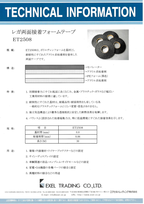 ET2508は、ポリエチレンフォームを基材とし耐候性にすぐれたアクリル系粘着剤を塗布...