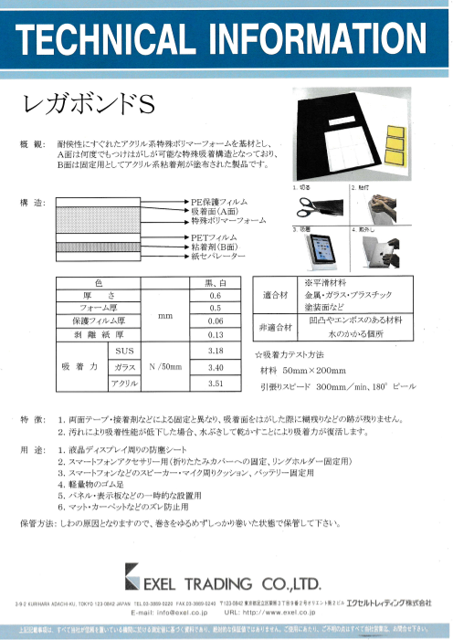 ~これは不思議!レガボンドS~一見、何の変哲もないフォーム材に見えるレガボンドSですが、何と、のりを使っていないのにつけたりはがしたり繰り返し使用できる仮固定材な...