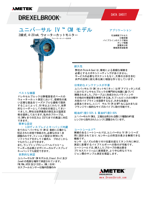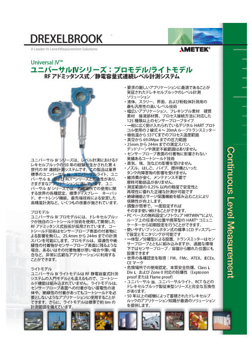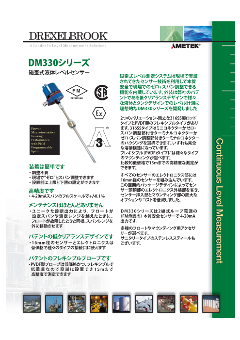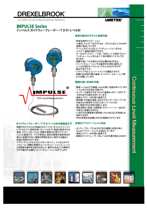 ◆ドレキセルブルックはレベル測定技術のリーダーとして、化学・石油化学・電力・下水道・食品・薬品・パルプ・紙・自動車など各種工業分野にレベル問題の解決策を提供してまいり...