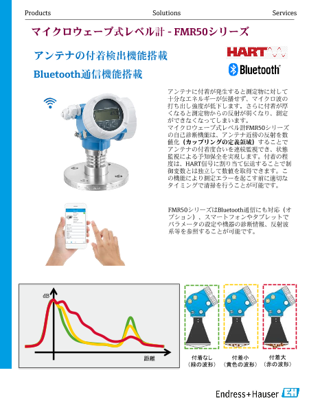 マイクロウェーブ式レベル計FMR50シリーズの自己診断機能は、アンテナ近傍の反射を数値化(カップリングの定義領域)することでアンテナの付着度合いを連続監視でき、状態監視に...