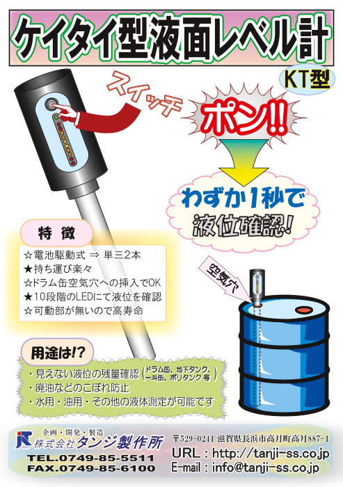 ◆電池駆動式◆持ち運び楽々◆ドラム缶空気穴への挿入でOK◆10段階のLEDにて液位を確認◆可動部が無いので高寿命◆詳細はカタログをダウンロードしご覧いただくか、お気軽...