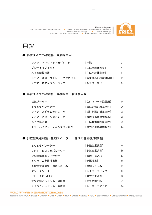 レアアースマグネットセパレータ・磁気プーリーなどを掲載