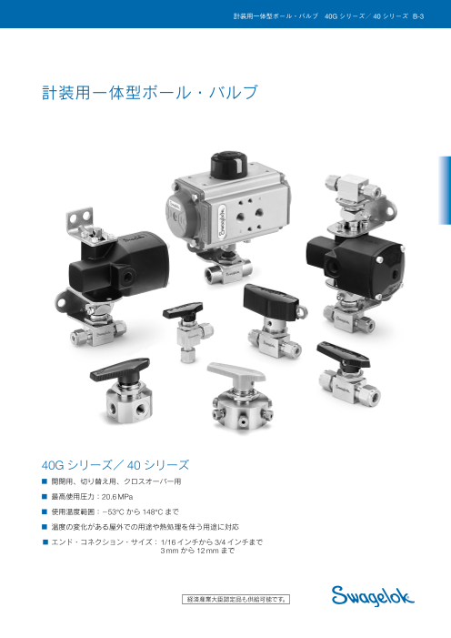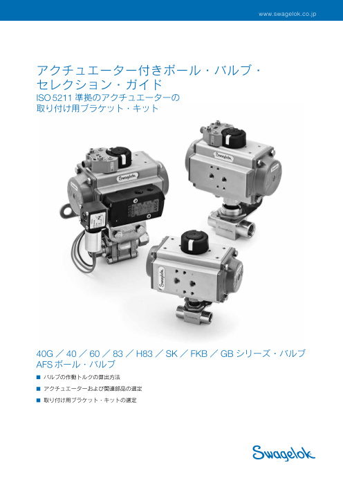 本ガイドでは、次の手順について説明しています。◆Swagelok 40Gシリーズ、40シリーズ、60シリーズ、83シリーズ、H83シリーズ、SKシリーズ、FKBシリーズ・バルブ、GBシリーズ...