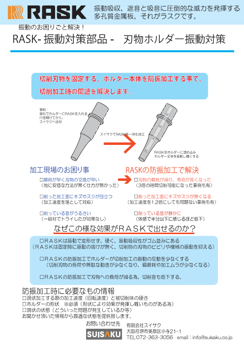 ・多孔質鋳鉄ラスクを使ったバイトホルダの防振化と防振化する事による加工への良い効果・振動問題の精査から測定、対策まで一貫してできる 以上の内容の資料になります。