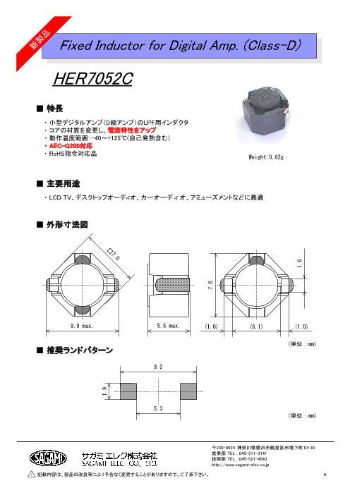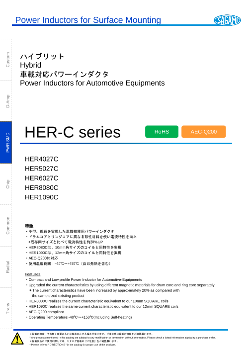 <特長> ドラムコアとリングコアに異なる磁性材料を使い電流特性を向上 *既存同サイズと比べて電流特性を約20%UP HER8080Cは、10mm角サイズのコイルと同特性を実現 HE...