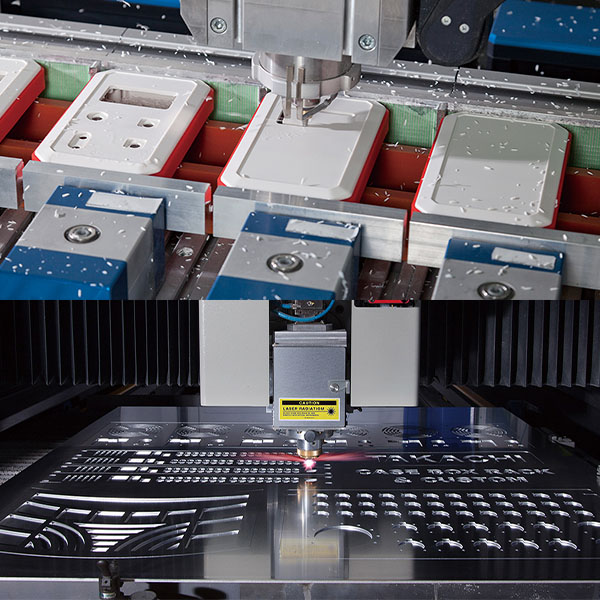 タカチはファイバーレーザー加工機 ・ 高速マシニングセンターを導入しています。ファイバーレーザーは、従来のCO2レーザーに比べ約2倍の切断速度。タカチで導入したドイツ...