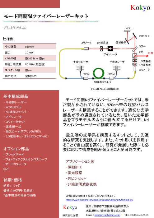 適切な光学部品が予め選定されているため、届いた光学部品をプラモデルのように組み立てるだけで、Ndファイバーレーザーが構成できます。 最先端の光学系を構築するキットとして...
