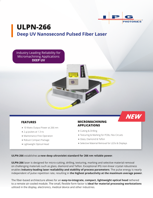 超短パルス深紫外ファイバー・レーザは、ガラス、ダイヤモンド、テフロンなどの材料の切断、穴あけ、テクスチャリング、マーキングだけでなく、マイクロLEDのリフトオフ、転写、修理などの微細加工アプリケーションのための信頼性が高く、費用対効果の高い選択肢です。