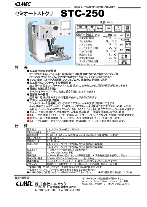 エルメック セミオートストリップクリンパー STC-250 のご紹介です。電線のストリップと圧着が自動で行えます。インバータ駆動式の圧着機搭載しているため、省エネで音が静かで...