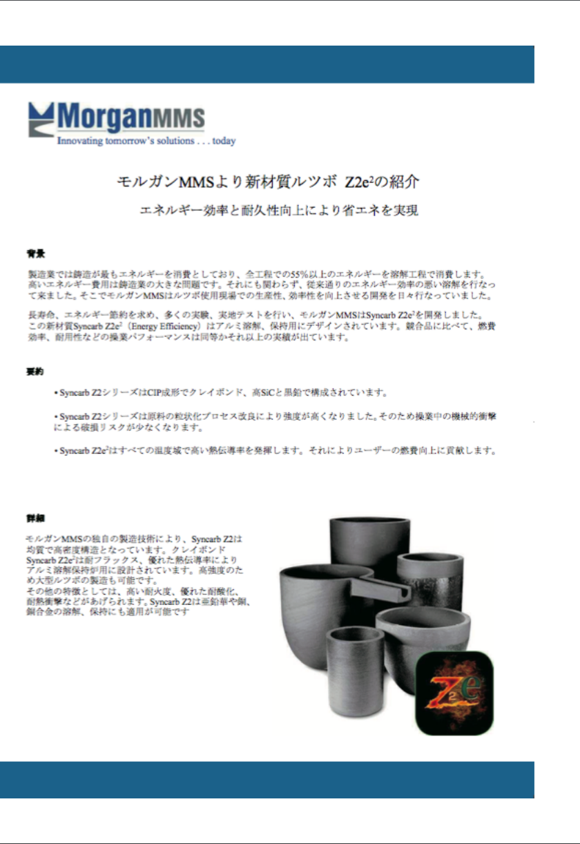 長寿命、エネルギー節約を求め、多くの実験、実地テストを行い、モルガンMMSはSyncarb Z2e2を開発しました。この 新材質Syncarb Z2e2(Energy Efficiency)はアルミ溶解、保持用...