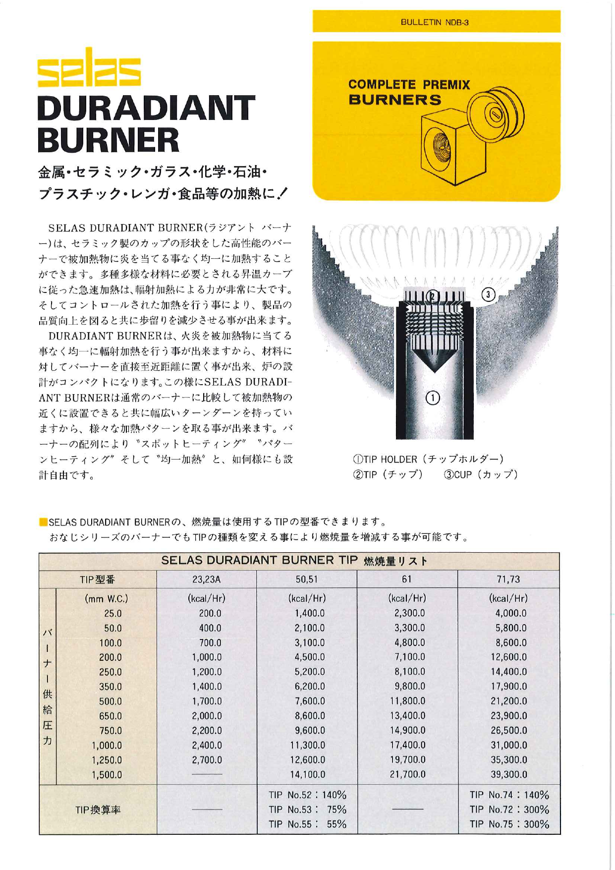 SELAS DURADIANT BURNER(ラジアントバーナー)は、セラミック製のカップの形状をした高性能のバーナーで被加熱物に炎を当てる事なく均一に加熱することができます。多種多様...