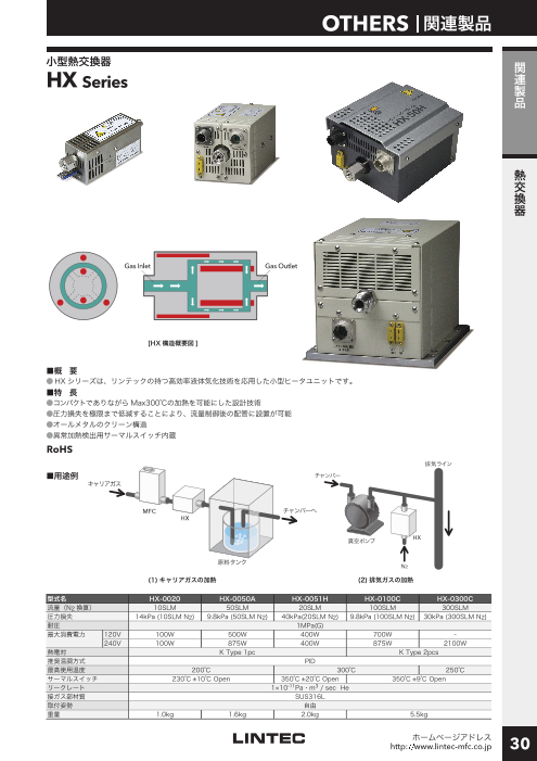 HXシリーズは、リンテックの持つ高効率液体気化技術を応用した小型ヒータユニットです。◆コンパクトでありながらMax300°Cの加熱を可能にした設計技術。 ◆圧力損...