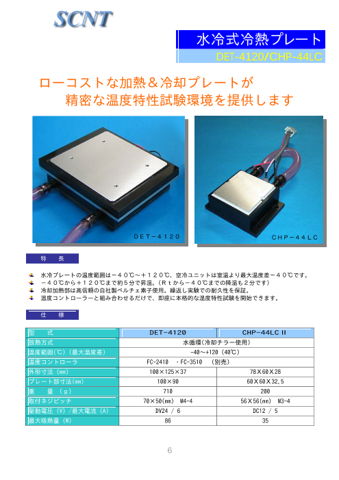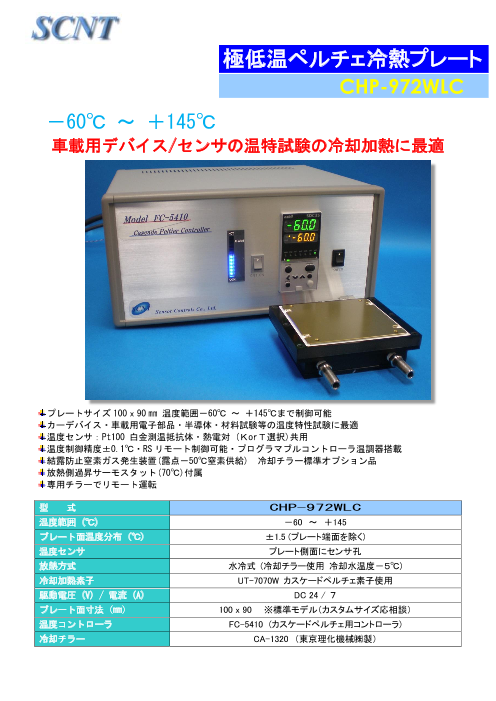 ◆水冷式冷熱プレート DET-4120/CHP-44LC・水冷プレートの温度範囲は-40°C~+120°C、空冷ユニットは室温より最大温度差-40°Cです。 ・-40°Cから+120°Cまで約5分で...