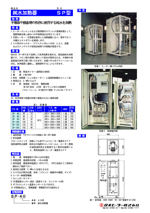 1.ヒーターエレメントおよび接液部のステンレス表面処理として、電解研磨を施し純水への不純物溶出を抑えています。2.石英ヒーター・石英槽を使用した加熱装置に比べ、堅牢で...