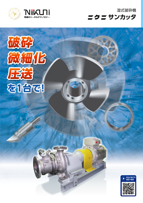 【掲載内容】・製品特長・用途例・構造説明・性能曲線【特長】・破砕、微細化、圧送を1台でできるため圧送用のポンプが不要・1台で3段階の破砕ができるため、固...