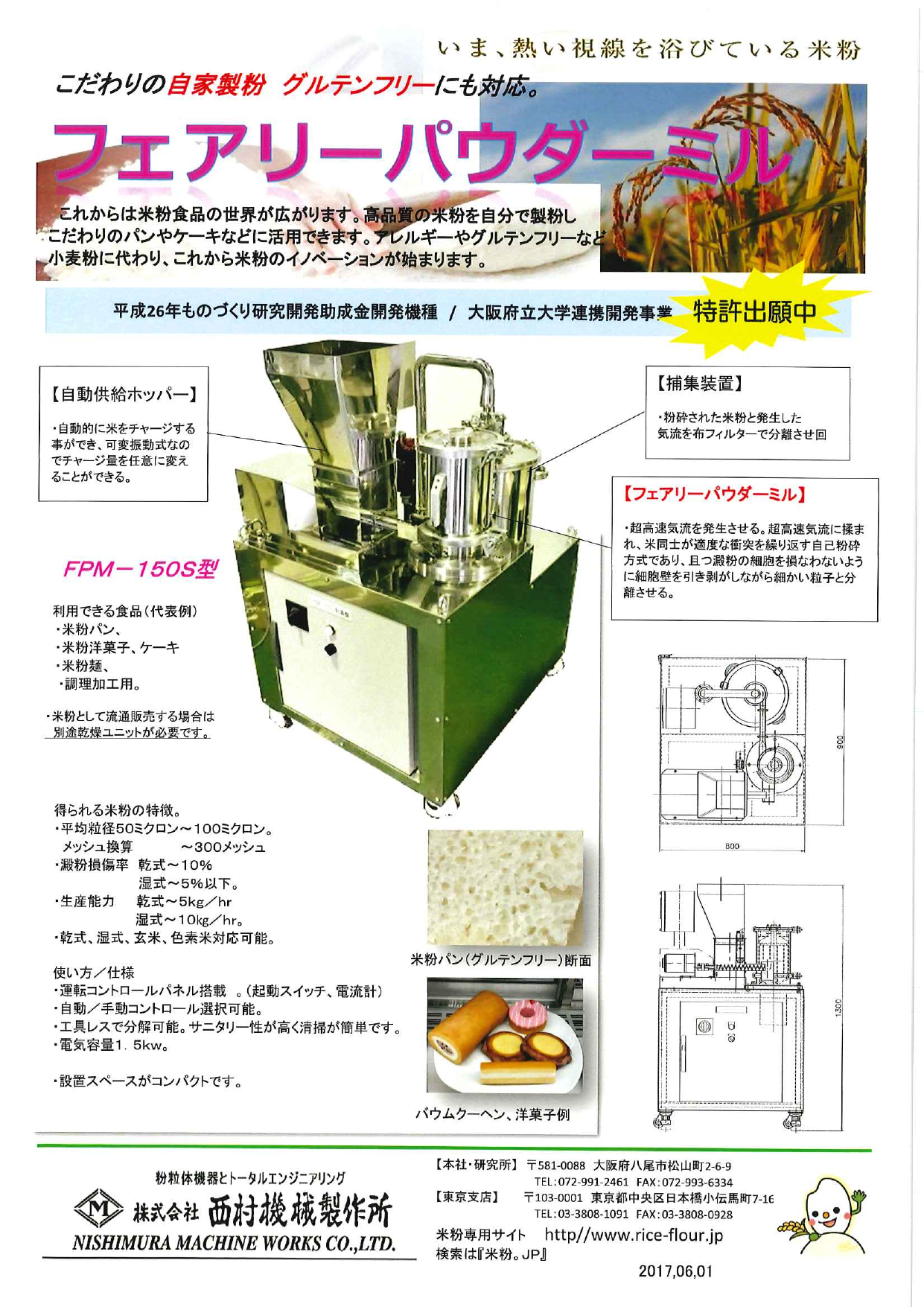 ◆平成26年ものづくり研究開発助成金開発機種/大阪府立大学連携開発事業!高品質の米粉を自分で製粉しこだわりのパンやケーキなどに活用できます!アレルギーやグルテンフリ...