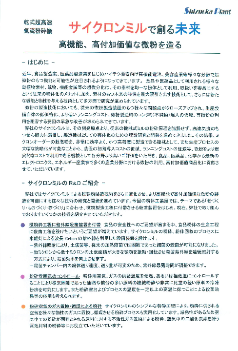サイクロンミルで創る未来 高機能、高付加価値な微粉を造る