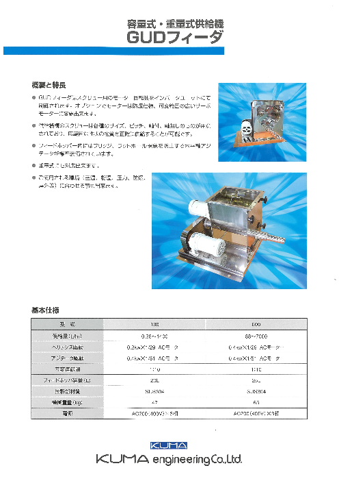 スイング式スクレーパー機構搭載により、湿粉や難供給原料の定量供給が可能非常に付着性の強い原料にはオーバーラップツインスクリューをご用意ヘリックス(スクリュー)/ス...