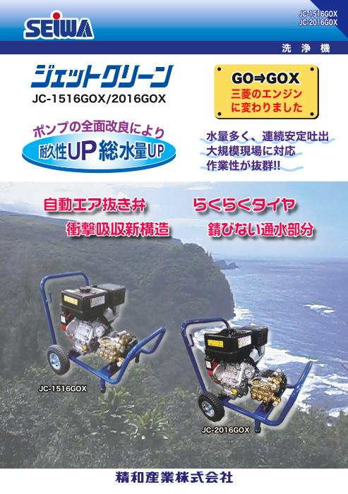 開放型洗浄機GOタイプがエンジンが変わりGOXとして生まれ変わりました水量多く、連続に安定吐出で大規現場にも対応、作業性が抜群!・自動エア抜き弁・らくらくタイヤ・...
