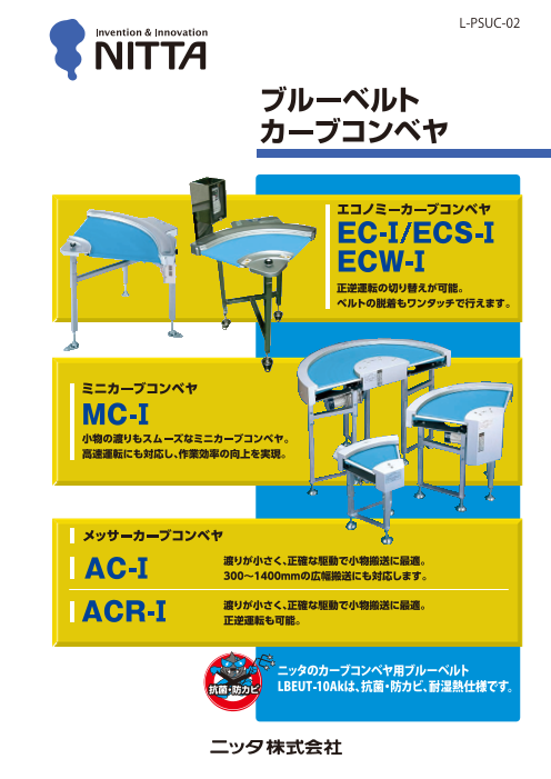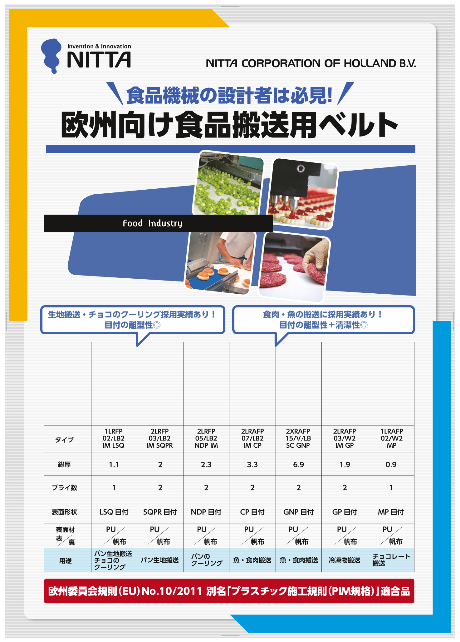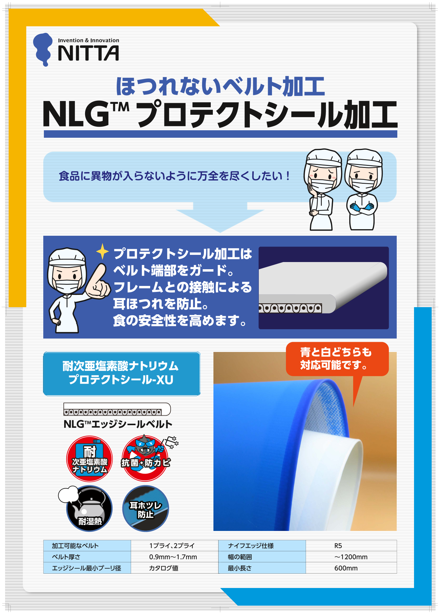 掲載製品◼︎溶けにくい・変色が抑えられるNLG(TM)ニッタブルーベルト◼︎溶けない・波打しないNLG(TM)高機能ベルト◼︎搬送物がくっつかないNLG(TM)非粘着ベルト◼︎熱くてもへ...