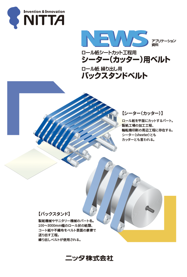 ニッタRTシリーズに新製品柔軟性・屈曲性アップ!で 段ボール搬送の高速化対応! 紙工機械用ベルトラインナップ・NRT-0 ・NRT-100・NRT-300・RT-300・NRT-500・...