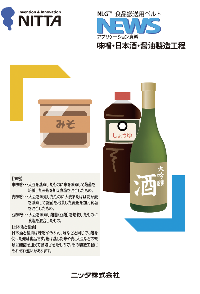 ※味噌・日本酒・醤油の製造工程には、トラフ仕様のベルトが多く使用されます。↓味噌・日本酒・醤油の製造工程の「 」には、搬送用ベルトが使用される場合があり、特に...