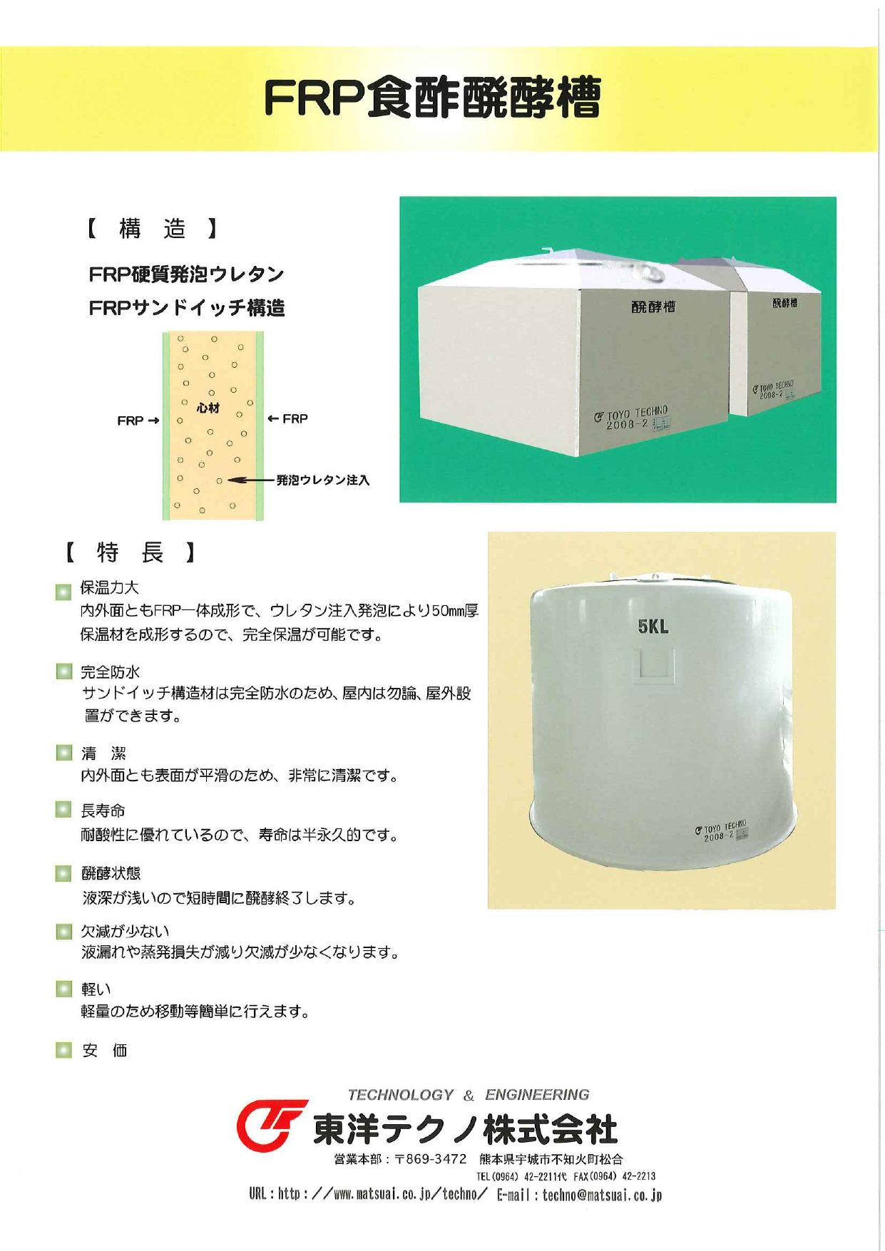FRP食酢発酵槽 カタログのご案内です。