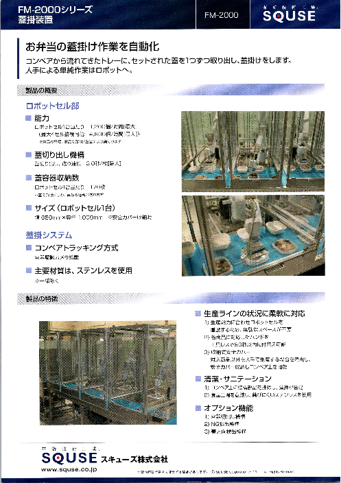 ・人手による単純作業はロボットへ・コンベアトラッキング方式 容器認識カメラ搭載・主要材質はステンレスを使用・生産ラインの状況に柔軟に対応◆詳細はカタログをダ...