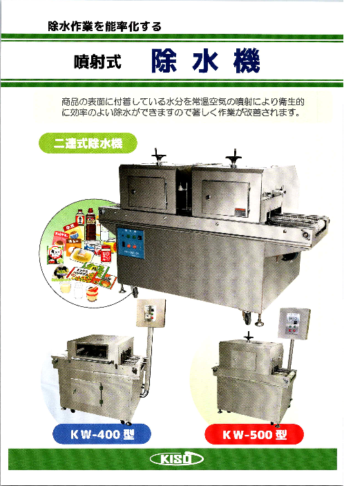 商品の表面に付着している水分を常温空気の噴射により衛生的に効率のよい除水ができますので著しく作業が改善されます。◆詳細はカタログをダウンロードしてご覧下さい。