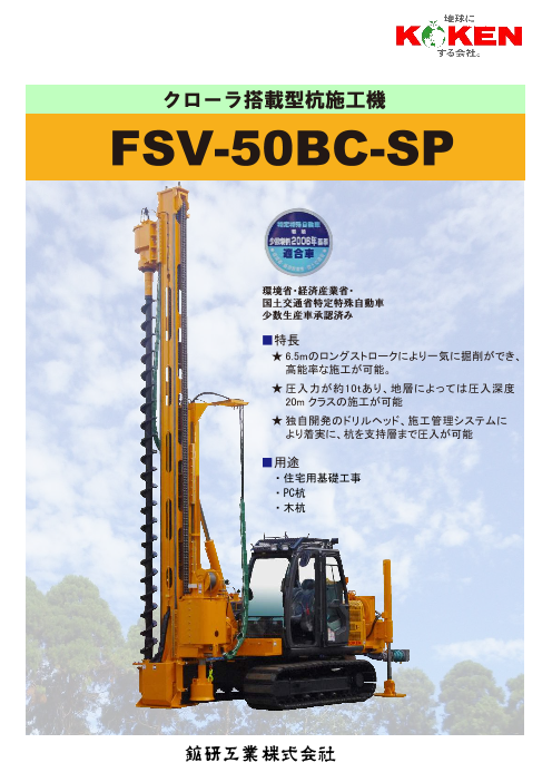 ・6.5mのロングストロークにより一気に掘削ができ、高能率な施工が可能。・圧入力が約10tあり、地層によっては圧入深度20m クラスの施工が可能。・独自開発のドリルヘッド、...