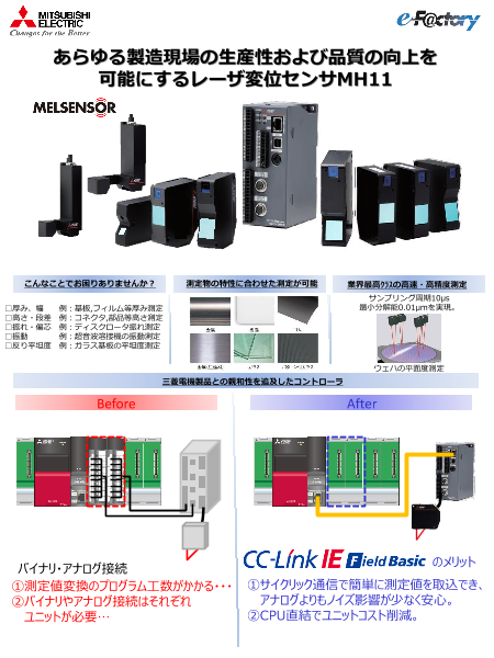業界最高クラスの超高速・高精度。当社のレーザ変位センサは、シーケンサ、表示器 GOTと連携し、ミクロン領域の測定で「Easy to Use」を実現します。◆業界最高クラスの測定...