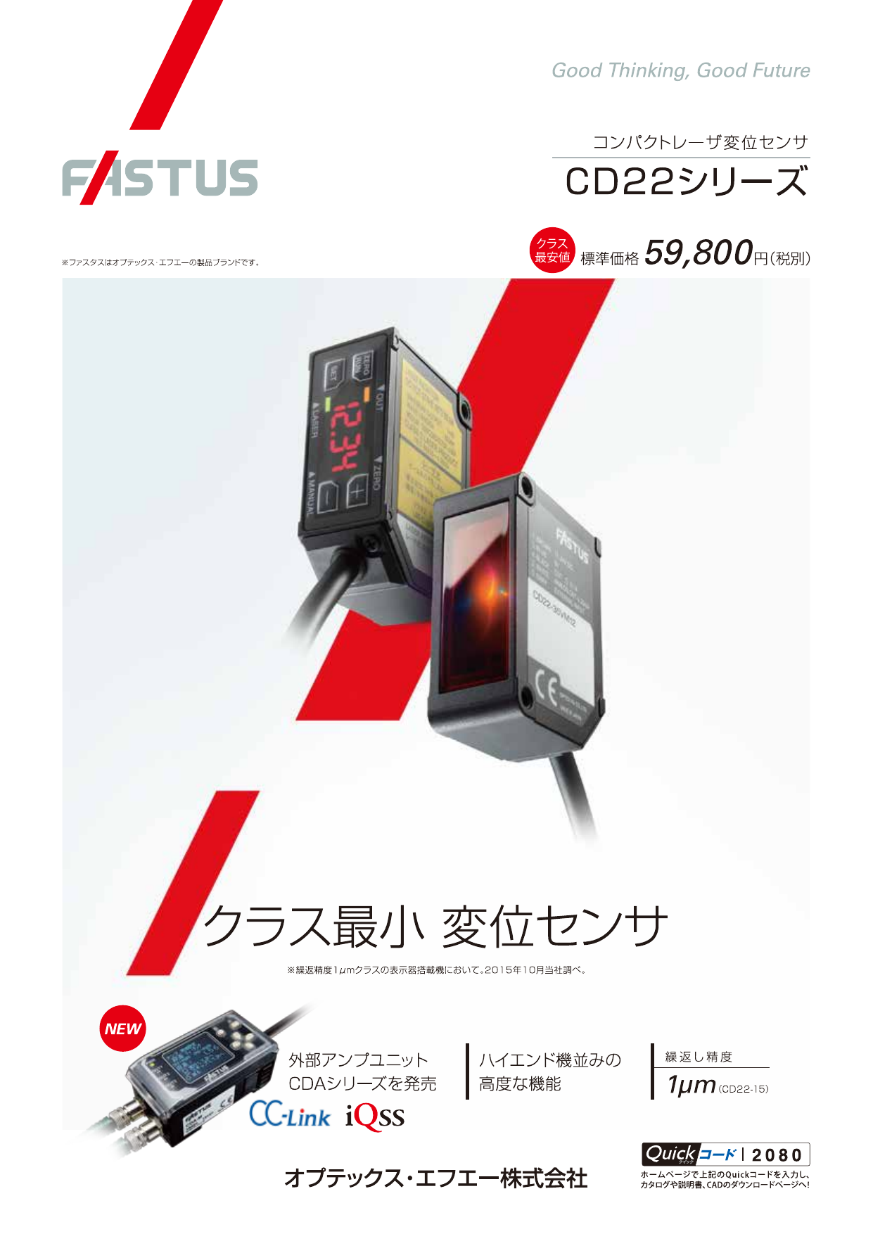 18×31×44mm(W×D×H)。光学系に新方式ハイブリッドレンズを採用し、蓄積した光学技術と融合させることで、クラス最小サイズを実現したFASTUS CD22シリーズ。測定処理をセン...