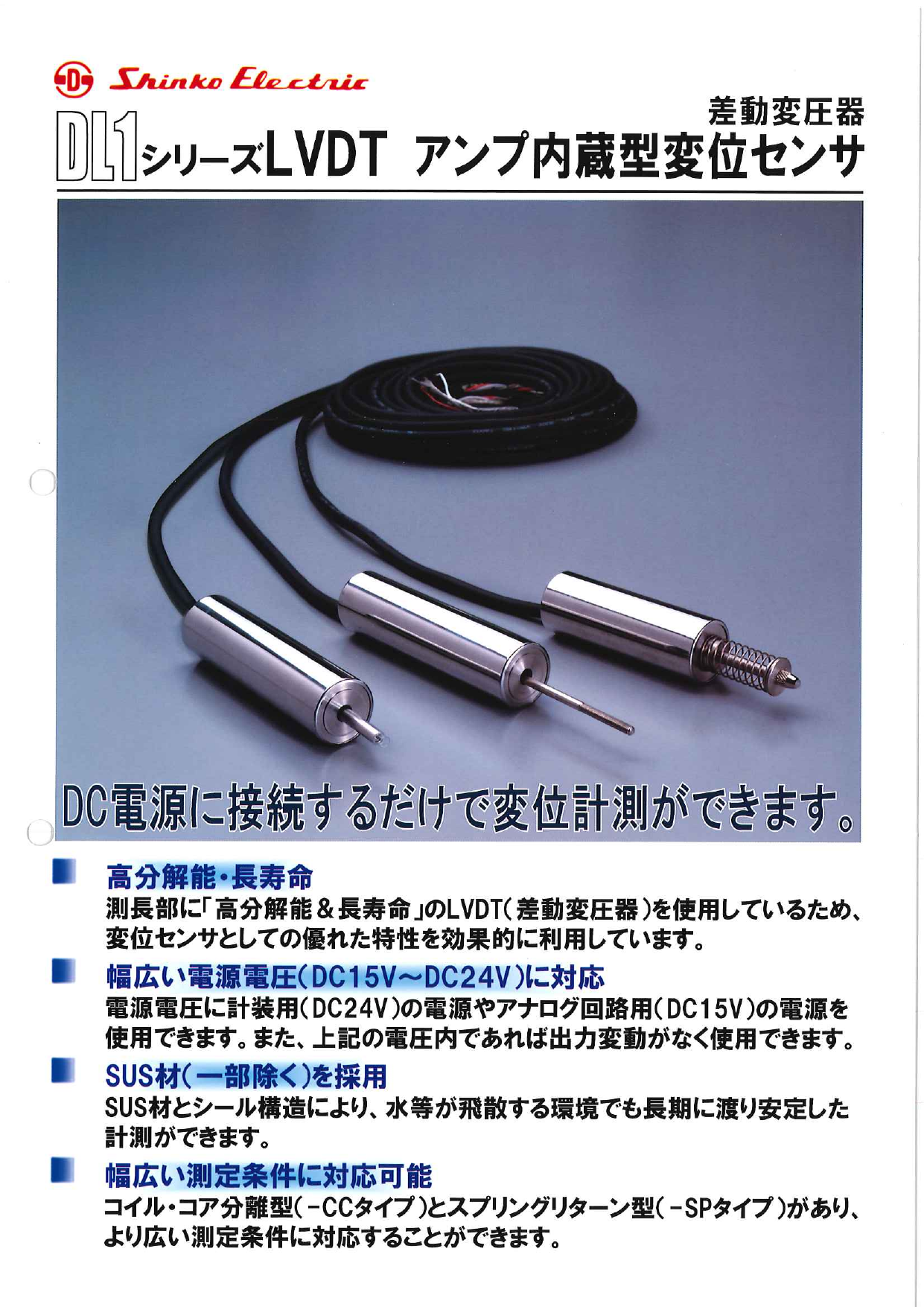 ・高分解能・長寿命 測長部に「高分解能&長寿命」のLVDT(差動変圧器)を使用しているため、 変位センサとしての優れた特性を効果的に利用しています。・幅広い電源電圧(D...