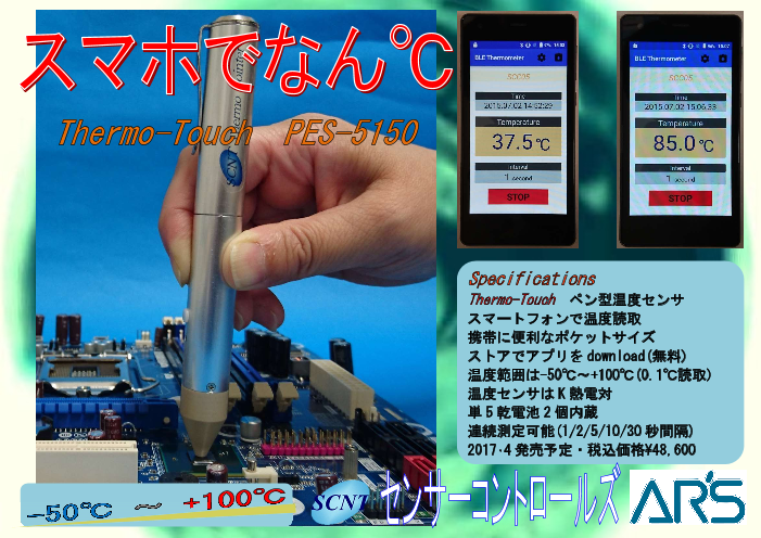 ◆携帯に便利なポケットサイズ◆ストアでアプリをDown Load(無料)◆温度範囲は-50℃〜+100℃(0.1℃読取)◆温度センサはK熱電対◆単5乾電池2個内蔵◆連続測定可能(1/2/5/10...