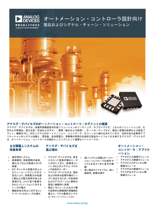 アナログ・デバイセズは、産業用高精度信号計測ソリューションのリーディング・サプライヤです。これらのソリューションは、化学および医薬品、炭化水素(石油およびガス)、環...
