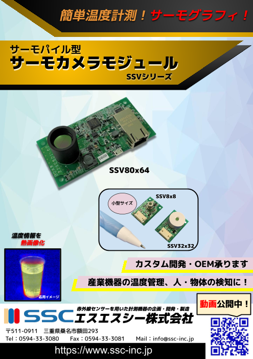 SSC株式会社は、温度計測機器をもっと楽に組み込むためのモジュール「SSVシリーズ」を発売します。本製品はハイマンセンサー社のサーモパイルアレイセンサーを使用した温度モジ...
