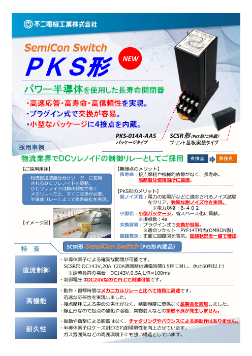 接点摩耗や機械的故障が無く、高頻度な使用箇所に最適です。搬送装置のDCソレノイドの制御用リレーとしてご採用実績がございます。ご採用事例と製品仕様詳細を紹介しており...