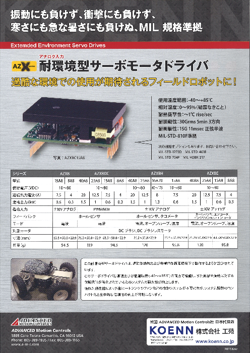 ◆デジタル通信対応 耐環境型サーボモータドライバ DZXシリーズ◆アナログ入力 耐環境型サーボモータドライバ AZXシリーズ使用温度範囲:-40〜+75℃ / -40〜+85℃相対...