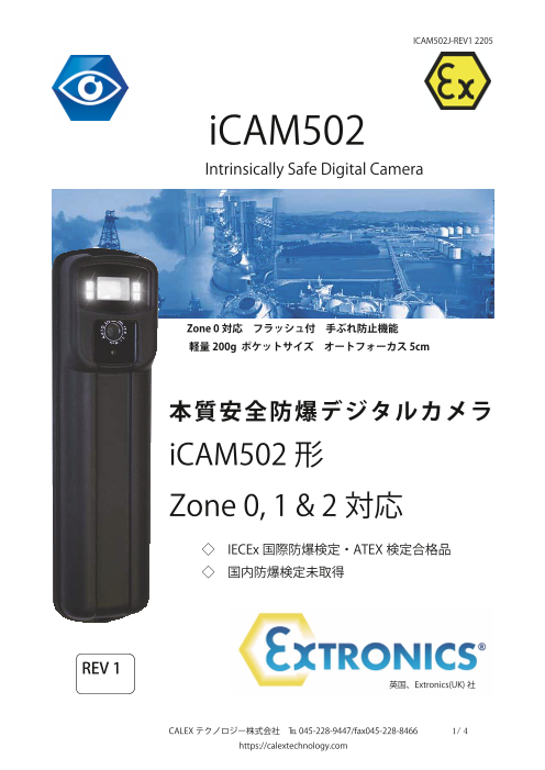 本質安全防爆デジタルカメラ iCAM502 形 Zone 0, 1 & 2 対応